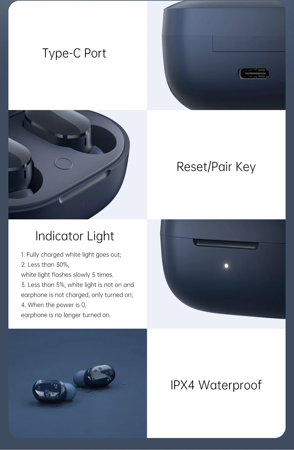 • Estuche cargador con entrada microusb y batería de 600mAh, tus audífonos se cargan mientras están guardados en su estuche.