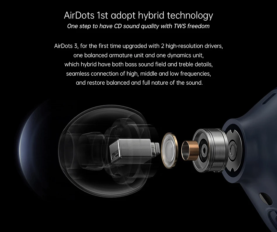 • Tecnología True Wireless, como en los Airdots Pro, para una conexión super rápida.